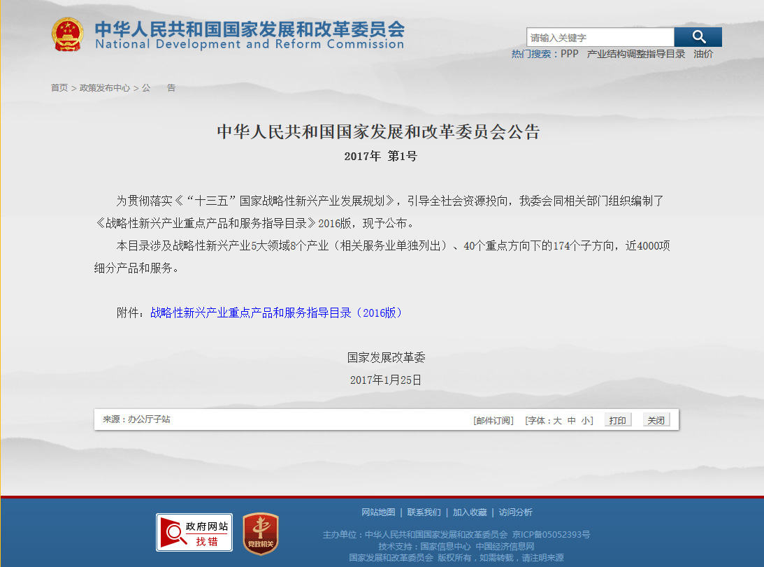 戰(zhàn)略性新興產(chǎn)業(yè)重點產(chǎn)品和服務指導目錄(2016版)(公告2017年第1號)
