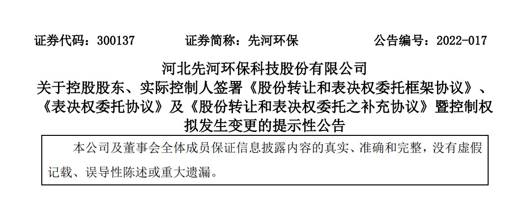 五一前后,環(huán)保行業(yè)大事不斷,前有博天環(huán)境和龍凈環(huán)保先后ST,后有先河環(huán)??刂茩?quán)易主。5月4日晚間,先河環(huán)保公告稱,公司控股股東、實(shí)際控制人李玉國與青島清利新能源有限公司(下稱“清利新能源”)簽署協(xié)議,擬將其持有的先河環(huán)保的566.75萬股股份轉(zhuǎn)讓給清利新能源,同時(shí)還將其持有的先河環(huán)保5186.95萬...
