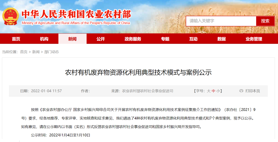 為貫徹落實(shí)《農(nóng)村人居環(huán)境整治提升五年行動(dòng)方案(2021—2025年)》部署要求,提高農(nóng)村易腐垃圾、廁所糞污等有機(jī)廢棄物無(wú)害化處理和資源化利用水平,強(qiáng)化實(shí)用技術(shù)供給,農(nóng)業(yè)農(nóng)村部、國(guó)家鄉(xiāng)村振興局在各省(區(qū)、市)推薦的基礎(chǔ)上,經(jīng)專(zhuān)家評(píng)審、實(shí)地核查,遴選了4種農(nóng)村有機(jī)廢棄物資源化利用典型技術(shù)模式和7個(gè)典型案...