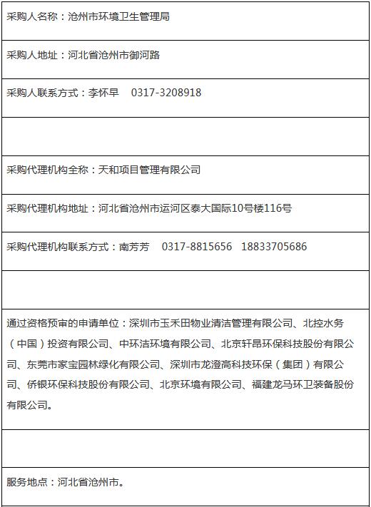 項目名稱:滄州市環(huán)境衛(wèi)生管理局環(huán)衛(wèi)市場化項目