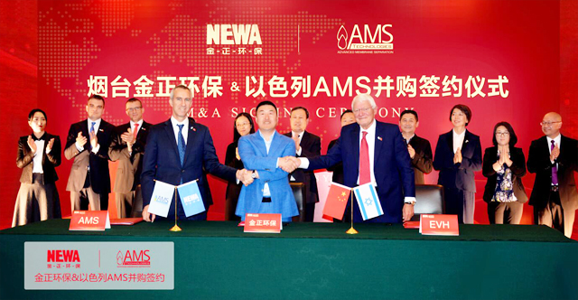 2018年11月28日,煙臺金正環(huán)保科技有限公司并購以色列AMS公司簽約儀式在煙臺東方海天酒店隆重舉行。這是金正環(huán)保于2017年在美國納斯達克主板上市后拓展全球市場布局的堅實一步。