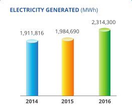 2016年錦江環(huán)境實(shí)現(xiàn)發(fā)電量增加16.6%,達(dá)到23.143億千瓦時(shí),上網(wǎng)電量增加15.1%至17.097億千瓦時(shí),供汽量增加35.7%至199萬(wàn)噸。