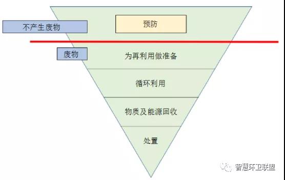 金字塔中的預(yù)防指:在設(shè)計(jì)和制造產(chǎn)品的過程中,盡量減少原料的使用量;延長產(chǎn)品的使用壽命;減少有害物質(zhì)的使用量。為再利用做準(zhǔn)備指:對(duì)產(chǎn)品的整體或部件進(jìn)行檢查、清理、修理、翻新等工作。循環(huán)利用指:使用廢物生產(chǎn)新的物質(zhì)或產(chǎn)品,包括堆肥。其他回收手段指:使用厭氧消化、焚燒發(fā)電、氣化等手段產(chǎn)生能量(包括燃料、熱、電)和一些物料(可以用作回填物)。處置指:填埋和沒有能量回收手段的焚燒。