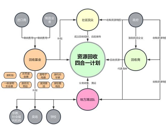 回收基金:督導(dǎo)責(zé)任業(yè)者繳交回收清除處理費,成立基金;運用獎助及補貼機制,推進資源回收處理體系建設(shè);建立有效回收制度,暢通回收處理管道。