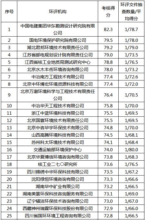 省外環(huán)評機構(gòu)考核結(jié)果表