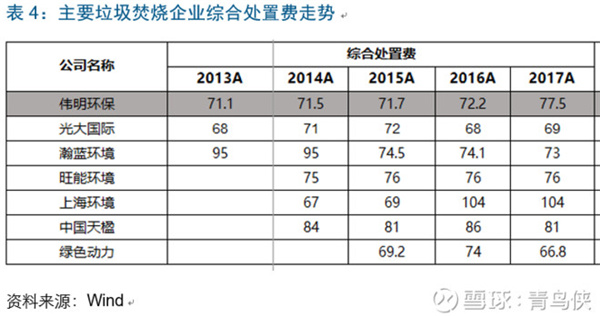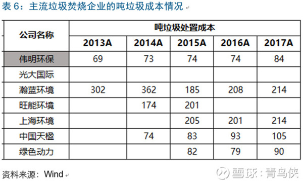偉明環(huán)保的綜合垃圾處置單價(jià)約77.5元/噸,排在行業(yè)中等,最高的是上海環(huán)境,高達(dá)104元/噸