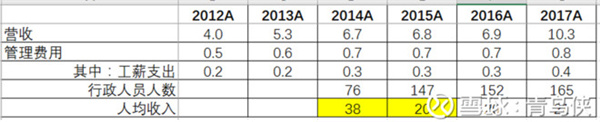 公司管理費(fèi)用里最大的是工薪支出,通過計(jì)算人均薪酬(工薪支出/行政人員人數(shù))發(fā)現(xiàn)公司的行政人員薪酬在2015年下滑明顯,對此存在一定疑惑;