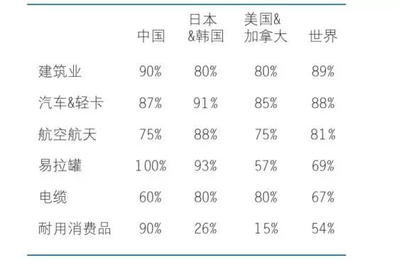 發(fā)達國家的再生鋁產量已經普遍超過原鋁產量。根據USGS的統(tǒng)計數據,2014年美國再生鋁產量為364萬噸,而原鋁產量僅為171萬噸,再生鋁產量占總產量的68%,日本2014 年的再生鋁產量占總產量的76%。