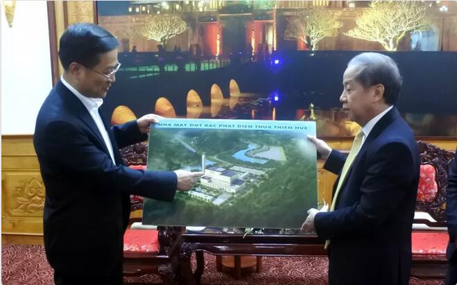 簽約儀式前,王天義總裁與潘玉壽主席就順化項(xiàng)目投資合作進(jìn)行了坦誠友好的交流。王天義總裁表示,光大國際是亞洲最大的垃圾發(fā)電投資運(yùn)營商,積累了世界一流的技術(shù)與管理經(jīng)驗(yàn),剛投產(chǎn)運(yùn)營的芹苴項(xiàng)目為光大國際進(jìn)一步開拓越南市場提供了寶貴的經(jīng)驗(yàn),我們對越南投資環(huán)境也充滿信心。我們有信心有能力將順化項(xiàng)目建設(shè)得更快更好,并不斷擴(kuò)大在越南的投資合作,希望雙方加快合同個(gè)別細(xì)節(jié)談判,早日開工建設(shè)。潘玉壽主席對此表示完全贊同,并就順化項(xiàng)目提出兩點(diǎn)希望,一是希望光大國際將順化項(xiàng)目建成環(huán)境優(yōu)美、品質(zhì)優(yōu)異的垃圾發(fā)電項(xiàng)目,二是希望雙方鼎力配合,加快項(xiàng)目建設(shè)進(jìn)程,盡快實(shí)現(xiàn)投產(chǎn)運(yùn)營。簽約儀式后,王天義總裁還向潘玉壽主席展示了順化項(xiàng)目設(shè)計(jì)效果圖。