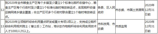 (八)秸稈綜合利用科技支撐工程。開展秸稈綜合利用關(guān)鍵技術(shù)、共性技術(shù)產(chǎn)學(xué)研聯(lián)合攻關(guān)。優(yōu)先支持秸稈綜合利用相關(guān)的院士(博士后)工作站、省級重點實驗室等創(chuàng)新創(chuàng)業(yè)平臺和團(tuán)隊項目的申報和立項。到2020年立項秸稈綜合利用重點研發(fā)或重大專項1項以上,支持成立秸稈綜合利用相關(guān)院士(博士后)工作站,培訓(xùn)農(nóng)作物秸稈綜合利用實用技術(shù)人才1000人次以上。(牽頭單位:市科技局、市農(nóng)委;配合單位:市質(zhì)監(jiān)局)