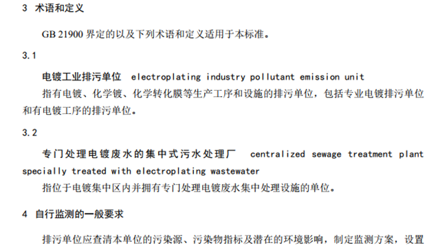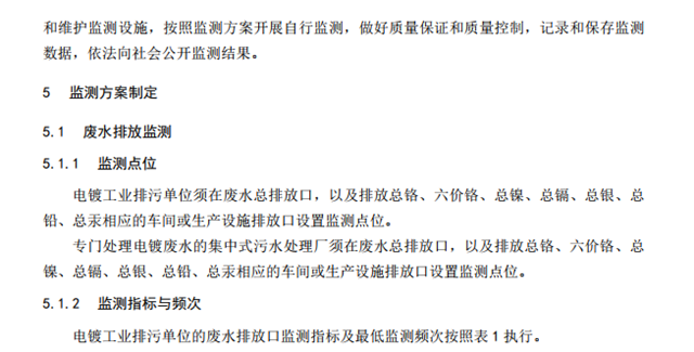生態(tài)環(huán)境部印發(fā)《排污單位自行監(jiān)測(cè)技術(shù)指南 電鍍工業(yè)》標(biāo)準(zhǔn),提出了電鍍工業(yè)排污單位以及專(zhuān)門(mén)處理電鍍廢水的集中式污水處理廠自行監(jiān)測(cè)的一般要求、監(jiān)測(cè)方案制定、信息記錄和報(bào)告的基本內(nèi)容和要求。
