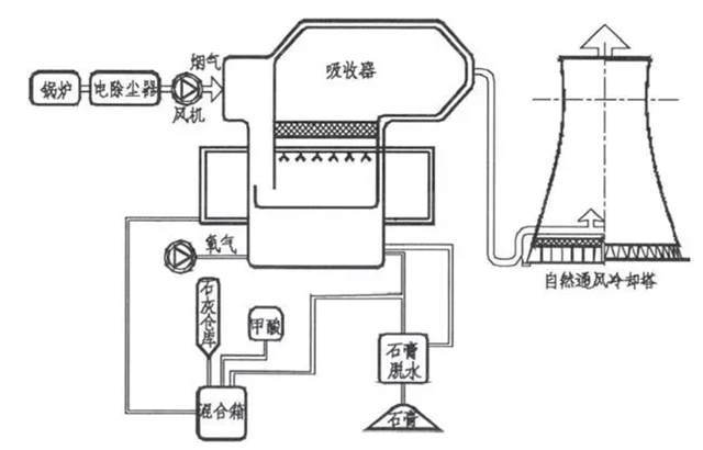 該技術(shù)是將火電廠鍋爐燃燒后的煙氣經(jīng)濕法脫硫后不通過煙囪,直接由煙道引入冷卻塔中,利用冷卻塔巨大的熱抬升能力排向大氣。