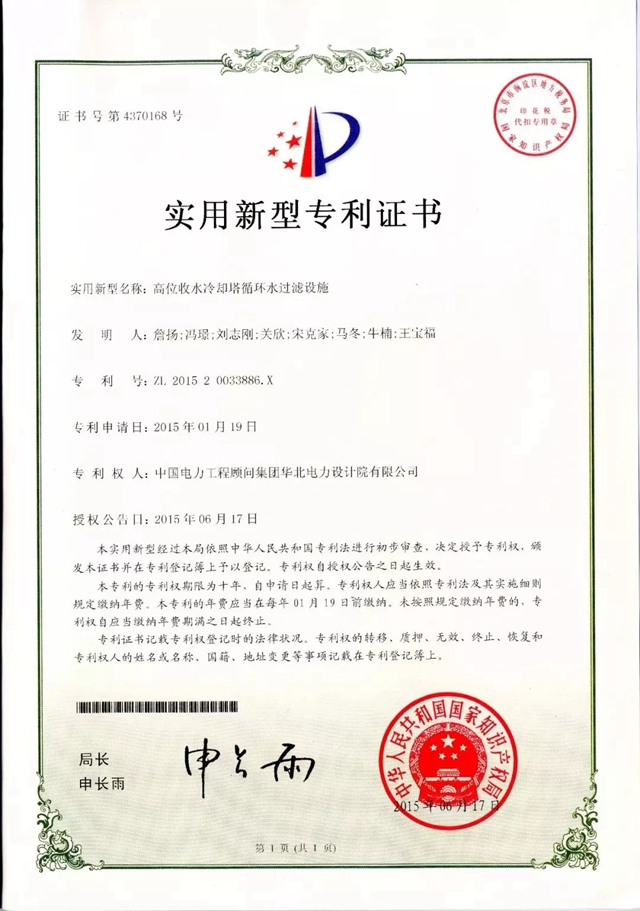 專家組在評審意見中高度評價了華北院取得的成果,一致認為:“該項目技術(shù)成果達到國內(nèi)領(lǐng)先水平,高位收水冷卻塔循環(huán)水過濾設(shè)施達到國際先進水平”“建議盡快推廣應(yīng)用”。