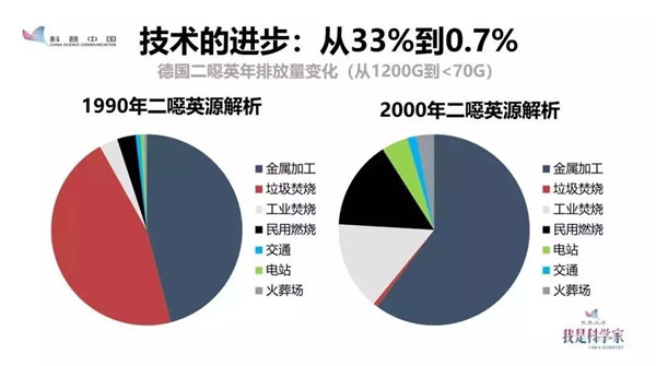公眾對(duì)于污染物質(zhì)的擔(dān)憂、抵抗和集會(huì)游行,從某種意義上來(lái)說(shuō),推動(dòng)了更嚴(yán)格的環(huán)境法律的推出以及環(huán)境標(biāo)準(zhǔn)的提高,以及技術(shù)的進(jìn)步和工藝的改進(jìn)。1990年到2000年間德國(guó)二噁英的源解析給我們提供了證據(jù):在1990年,全德國(guó)一年產(chǎn)生大概1200克的二噁英,其中來(lái)自垃圾焚燒的大概占33%。隨著技術(shù)的進(jìn)步和標(biāo)準(zhǔn)的提高,到2000年整個(gè)德國(guó)二噁英的排放量下降到低于70克,其中來(lái)自于垃圾焚燒裝置的排放只占了大概0.7%,這是一個(gè)非常低的比例。