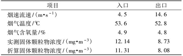 在系統(tǒng)投入的情況下,對(duì)脫硫塔出口的氟塑料換熱器FGC2-H的進(jìn)、出口顆粒物濃度進(jìn)行測(cè)量,結(jié)果見(jiàn)表5。FGC2-H入口固體顆粒物濃度為11.31mg/m3,出口為8.08mg/m3,達(dá)到了超低排放(10mg/m3)的標(biāo)準(zhǔn)。據(jù)表中的數(shù)據(jù)計(jì)算,氟塑料換熱器對(duì)固體顆粒物的脫除效率為28.6%。由此可見(jiàn),系統(tǒng)在能回收煙氣余熱和水分的同時(shí),實(shí)現(xiàn)了顆粒物的協(xié)同脫除。