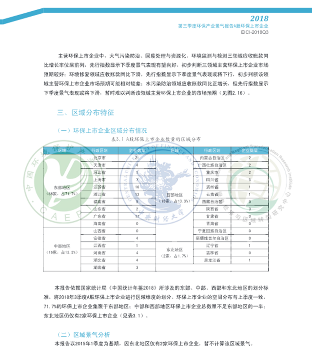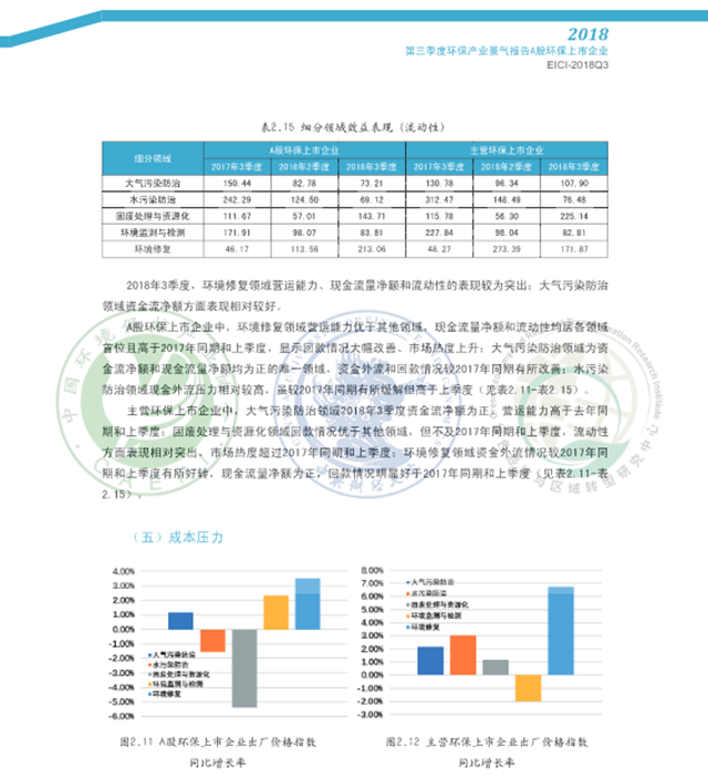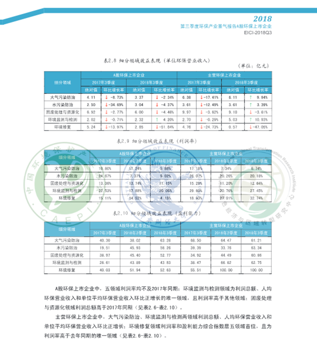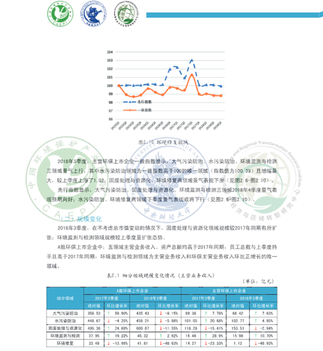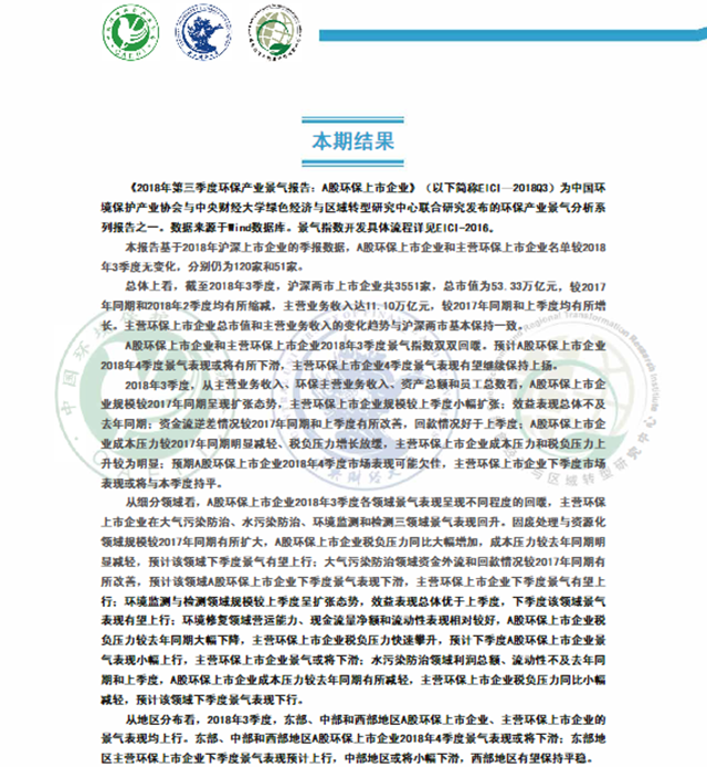 原標題:2018年第三季度環(huán)保產(chǎn)業(yè)景氣報告:A股環(huán)保上市企業(yè)