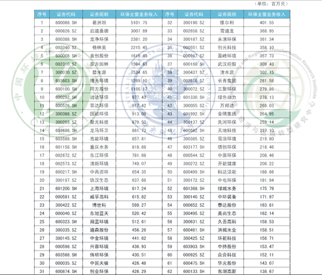附錄D 2018年第三季度A股環(huán)保上市企業(yè)表現(xiàn)(單位:百萬元)