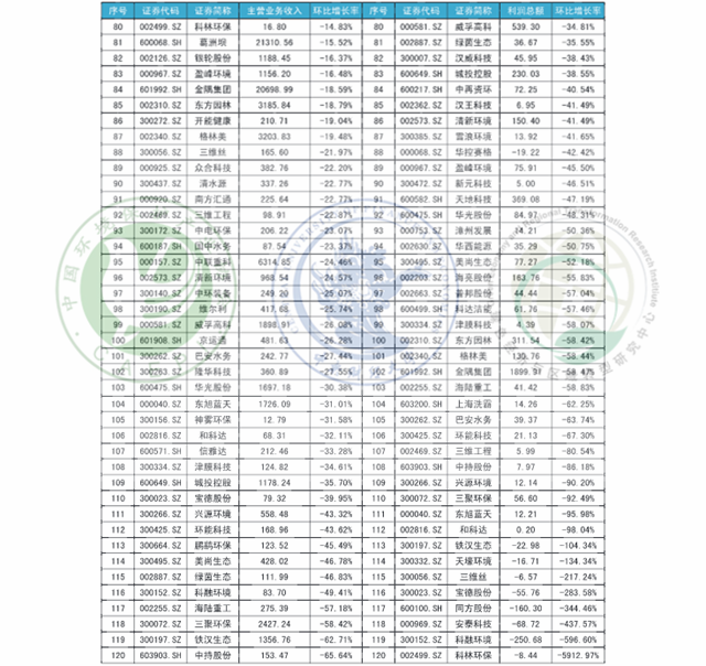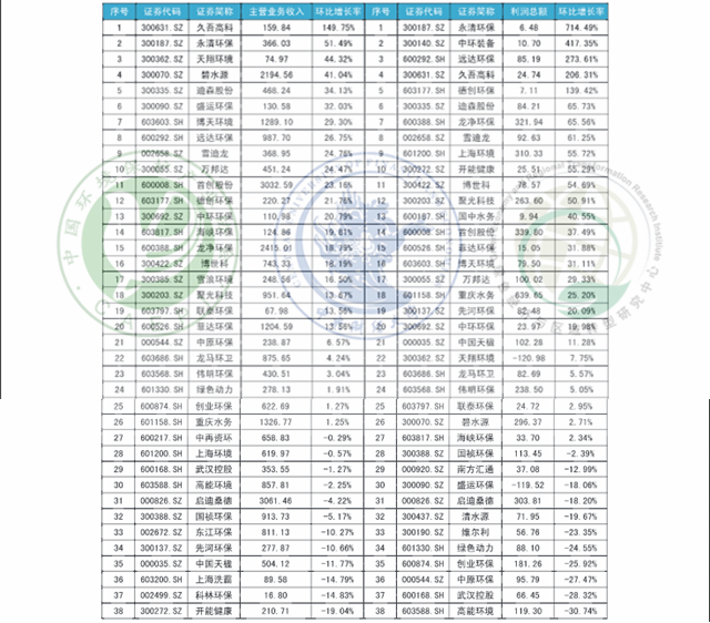 附錄E 2018年第三季度主營環(huán)保上市企業(yè)表現(xiàn)(單位:百萬元)