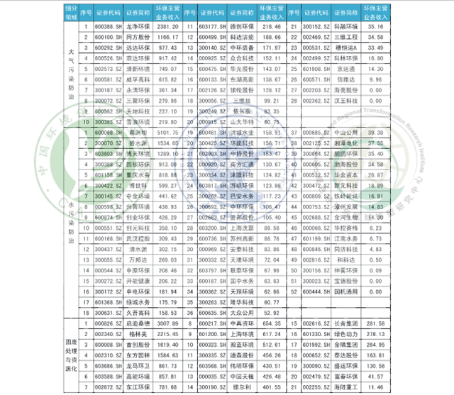 附錄A 2018年第三季度A股環(huán)保上市企業(yè)環(huán)保主營業(yè)務(wù)收入情況