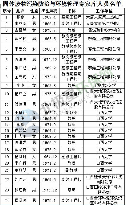 408名!山西省土壤和固體廢物污染防治與環(huán)境管理專家?guī)烊霂鞂<夜?/h1>