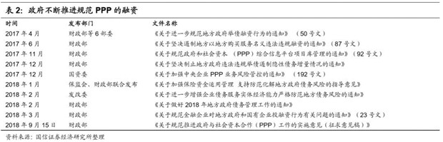 10月31日國務院發(fā)布《關于保持基礎設施領域補短板力度的指導意見》明確表示,對經(jīng)核查符合規(guī)定的PPP項目加大推進力度,積極推動符合條件項目發(fā)行債券、規(guī)范開展資產(chǎn)證券化。