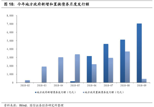 由于大多數(shù)地區(qū)于 5 月才通過本年預算調(diào)整方案并最終確定一般債和專項債的限額,因此上半年發(fā)行的地方政府債券主要是置換債券,新增債券從5月份才開始發(fā)行。結(jié)合專項債券的月度發(fā)行情況,截至到9月底新增專項債券可能已經(jīng)發(fā)行了1.49萬億,年度1.35萬億的計劃或可超額完成。