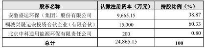 本次世豐國際以自有資金共計 25,880.05 萬元人民幣,通過增資的方式,獲得標的公司 51%的股權(quán),盛運環(huán)保持有標的公司 19.05%的股權(quán),桐城興晟運安投資合伙企業(yè)(有限合伙)持有標的公司 29.56%的股權(quán),北京中科通用能源環(huán)保有限責任公司持有標的公司 0.39%。