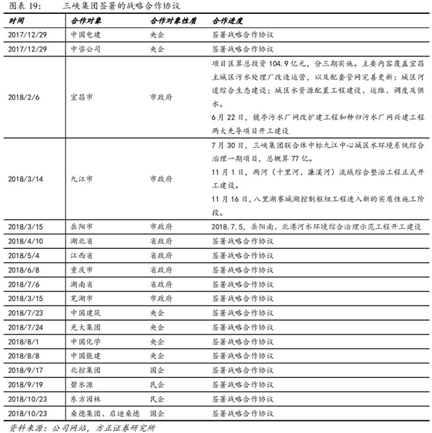 2018年初至今,三峽集團(tuán)已與6家央企簽署共抓長(zhǎng)江大保護(hù)戰(zhàn)略合作框架協(xié)議,與四家國(guó)企、民企簽署戰(zhàn)略合作協(xié)議,與長(zhǎng)江沿線8省市簽訂戰(zhàn)略框架協(xié)議。