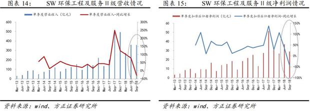 由于環(huán)保板塊2018年一季度業(yè)績(jī)高增,第二季度開始業(yè)績(jī)?cè)鏊俜啪?,隨著預(yù)期現(xiàn)有利好政策落實(shí),預(yù)計(jì)環(huán)保企業(yè)業(yè)績(jī)的低點(diǎn)出現(xiàn)在2019年第一季度。環(huán)保企業(yè)的基本面可能是個(gè)平底,受基建政策、融資政策和公司自身戰(zhàn)略選擇三方面綜合影響。