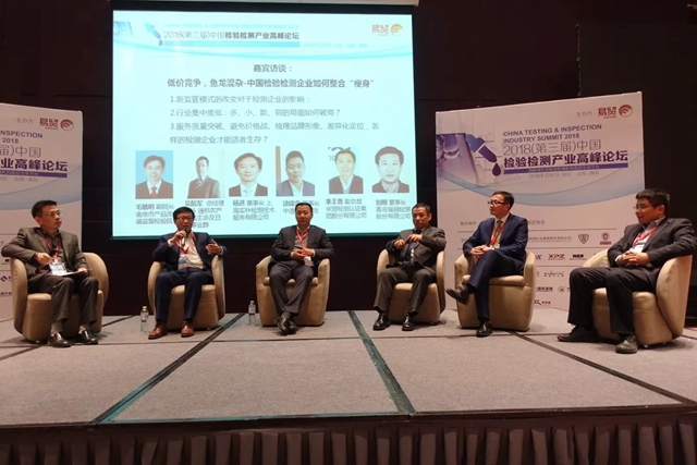 上午的最后環(huán)節(jié)是一場精彩的嘉賓訪談,訪談主題是“低價競爭,魚龍混雜-中國檢驗檢測企業(yè)如何整合‘瘦身’”。