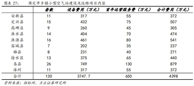 2018年5月,先河環(huán)保中標(biāo)保定市鄉(xiāng)鎮(zhèn)小型空氣站建設(shè)及運(yùn)維項(xiàng)目,共涉及容城、徐水、淶源、涿州、雄縣、安新等10個(gè)縣共計(jì)130個(gè)鄉(xiāng)鎮(zhèn)的小型空氣站建設(shè)及運(yùn)維,合同總金額4398萬(wàn)元。