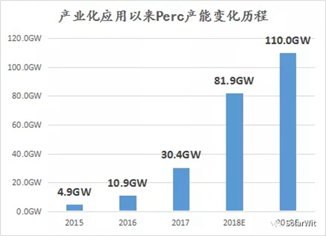 由于2019年需求很旺盛,而當(dāng)前價格下臺灣電池產(chǎn)能無法有效運轉(zhuǎn),所以在當(dāng)前價格下,大陸地區(qū)的電池片產(chǎn)能也是相對緊缺的。電池片不能囤積庫存,所以當(dāng)需求不好的時候率先跌價,當(dāng)需求旺盛的時候率先漲價,對行業(yè)終端需求變化更加敏感,由于目前單晶perc售價為1.28元/W;多晶電池的售價0.88元每瓦,兩者價格差高達0.4元,偏大,下游承受能力低,預(yù)期在2019年2月前后perc電池片價格有望回調(diào)到1.1元的位置(此價格下電池廠依舊可以保持較好盈利)。全年來看,電池片還是片緊缺的,大家的擴產(chǎn)步伐也不會停下來。2019年底,單晶Perc的產(chǎn)能有可能達到110GW。