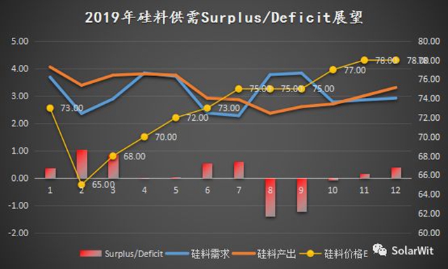 在44.3萬噸需求假設(shè)下,2019年硅料供給平衡曲線為: