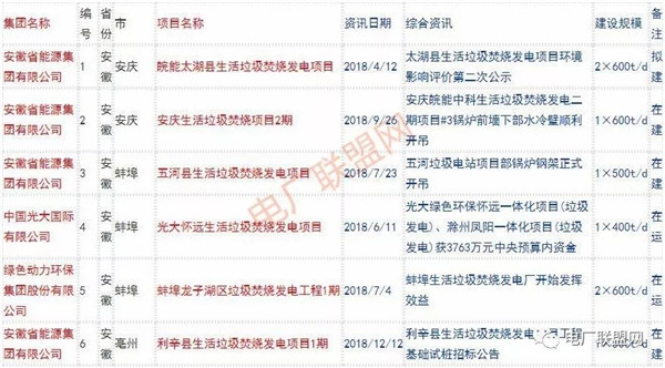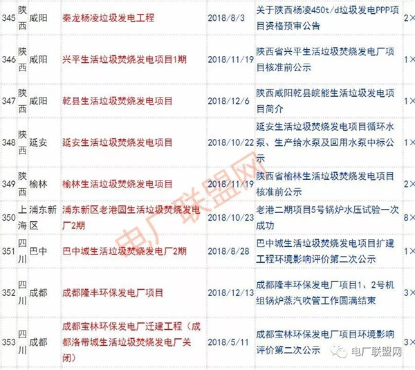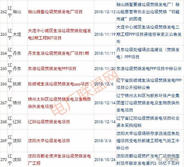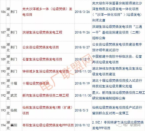2018年新投入運(yùn)行的生活垃圾焚燒廠超過70座,在建項(xiàng)目166座,擬建項(xiàng)目201座.具體項(xiàng)目名單如下: