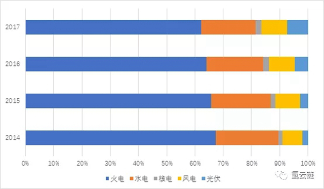 圖2 2014-2017年度全國發(fā)電裝機總容量比例