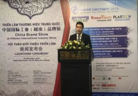 “中國國際工業(yè)(越南)品牌展”由中華人民共和國商務(wù)部主辦,中華人民共和國商務(wù)部外貿(mào)發(fā)展事務(wù)局承辦,中國化工信息中心協(xié)辦。商務(wù)部外貿(mào)發(fā)展局國際展覽處處長(zhǎng)苗華偉先生出席發(fā)布會(huì)并致歡迎辭,中國化工信息中心副主任揭玉斌先生出席發(fā)布會(huì)并致開幕詞,越南工業(yè)和貿(mào)易部、越南紙漿及造紙工業(yè)協(xié)會(huì)、越南橡膠協(xié)會(huì)、胡志明橡塑工業(yè)生產(chǎn)商協(xié)會(huì)領(lǐng)導(dǎo)受邀出席會(huì)議并發(fā)言,近160位展商代表及媒體朋友出席發(fā)布會(huì)活動(dòng)。