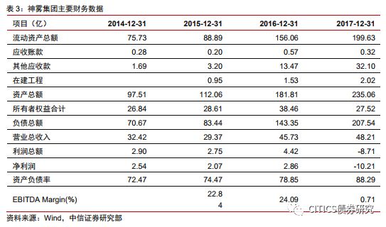 (1)業(yè)務(wù)擴(kuò)張速度快,資金流動性趨緊,債務(wù)負(fù)擔(dān)持續(xù)加重。近年來集團(tuán)與子公司在建工程項目合同金額不斷增大,前期的資金投入大。項目投資對外部融資的需求大,依靠負(fù)債規(guī)模持續(xù)擴(kuò)張,由14年的70.67億元增至17年207.54億元。神霧集團(tuán)分別質(zhì)押神霧環(huán)保和神霧節(jié)能兩家上市總公司總持股比例的99.78%、82.49%,外部融資渠道收緊、融資環(huán)境惡劣。且違約后續(xù),相繼有南京銀行借貸糾紛升級被查封1億元財產(chǎn)、控股股東持股被全部司法凍結(jié)等事件發(fā)生。