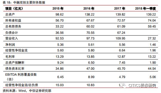 (2)資產(chǎn)規(guī)模擴(kuò)張速度快,債務(wù)期限結(jié)構(gòu)不合理。2016年,公司投資活動現(xiàn)金流出13.54億元,主要用于固定資產(chǎn)等長期資產(chǎn)投資以及惠澤農(nóng)牧100%股權(quán)收購,負(fù)債總額為70.55億元,相比于2015年的35.56億元增長98.4%,大規(guī)模舉債對外投資加大了公司2016年的財務(wù)杠桿。2017年末,公司短期債務(wù)高達(dá)25.3億元,貨幣資金20.95億元,其中受限資金15.49億元,實際可用貨幣資金不足以覆蓋短期債務(wù),造成流動性缺口。此外,2018年以來信用債認(rèn)購需求不足,使得企業(yè)再融資面臨一定壓力,對中融雙創(chuàng)信用環(huán)境產(chǎn)生較大影響。