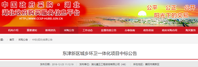 湖北省東津新區(qū)城鄉(xiāng)環(huán)衛(wèi)一體化項(xiàng)目發(fā)布中標(biāo)公告,啟迪桑德環(huán)境資源股份有限公司成為中標(biāo)的社會資本方,中標(biāo)金額為4120.173738萬元/年,實(shí)施期限3年,期限內(nèi)項(xiàng)目總金額達(dá)1.24億。