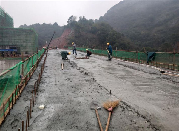 1、正在澆筑廠區(qū)物流通道道路水泥路面;