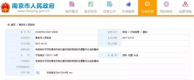 第一條 為鼓勵居民、企業(yè)參與低價值可回收物的回收利用,促進(jìn)生活垃圾減量化和資源化處理,依據(jù)《南京市生活垃圾分類管理辦法》等有關(guān)法律、法規(guī)和規(guī)章的規(guī)定,結(jié)合本市實際,制定本辦法。