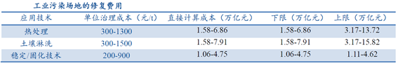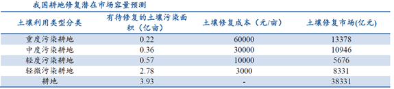 土壤修復十三五市場空間1100億-5900億,遠期市場總量在7.4萬億元左右。在中性情景下,十三五市場空間總量約3400億。
