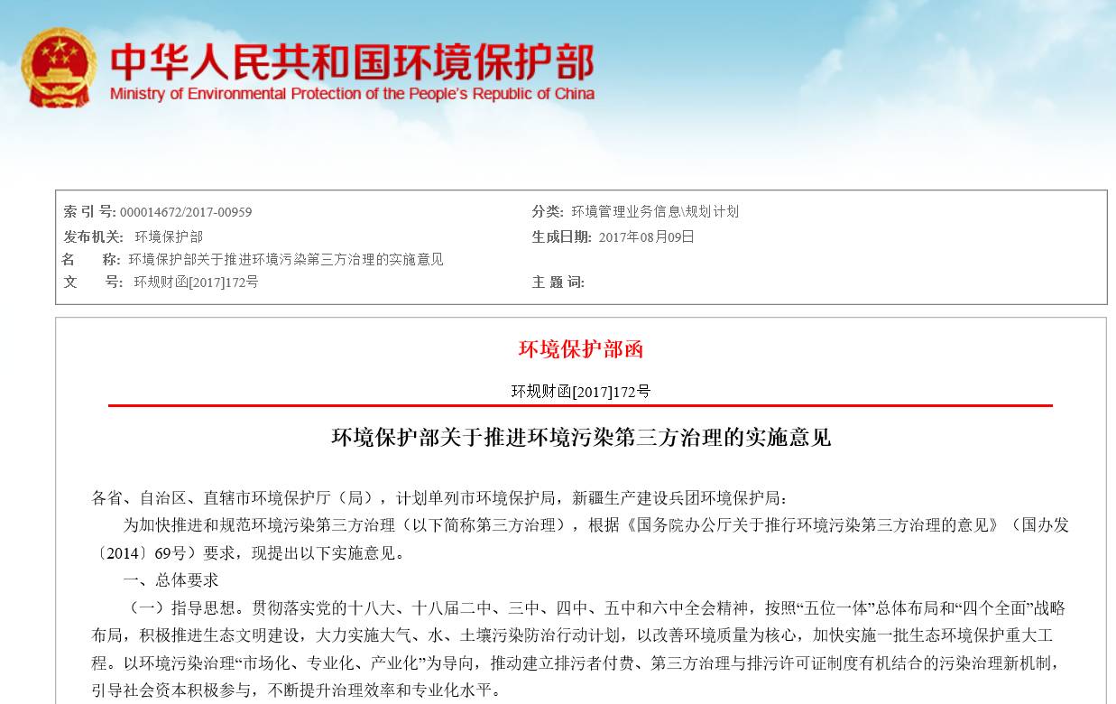 環(huán)境保護(hù)部關(guān)于推進(jìn)環(huán)境污染第三方治理的實(shí)施意見(jiàn)