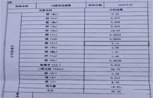 生產(chǎn)經(jīng)理楊聲全提供的一份其于2018年5月27日對廢礦泥自檢的成分報告顯示,廢礦泥中含有鎳、鈷、鉻、銅、鎘、鉛等重金屬,含量較高的還有硫、鐵、二氧化硅、水分等。