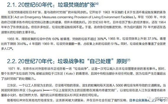 一,“自己處理”的原則。報(bào)告簡(jiǎn)要介紹了發(fā)生在1970年代的日本國(guó)內(nèi)的“垃圾戰(zhàn)爭(zhēng)”和由此引發(fā)并逐漸形成的地方自治體“自己處理”垃圾的原則。筆者認(rèn)為,盡管現(xiàn)實(shí)中日本所謂的“自己處理”的原則更多體現(xiàn)在了每個(gè)市在自己的轄區(qū)內(nèi)焚燒垃圾,但從根本上而言,它有助于讓各地方公眾及其政府明確自身的責(zé)任,同時(shí)不隨意或強(qiáng)勢(shì)地要求其他地方替自己承擔(dān)責(zé)任。在這樣的基礎(chǔ)上,或許能夠倒逼更有效的垃圾減量和分類行動(dòng),以及更公平合理地選擇垃圾處置場(chǎng)地。