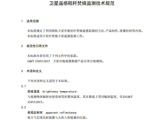 衛(wèi)星遙感秸稈焚燒監(jiān)測(cè)技術(shù)規(guī)范