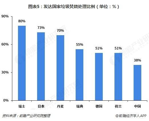 但與發(fā)達(dá)國家相比,我國的垃圾焚燒處理比例較低。瑞士垃圾焚燒處理比例高達(dá)80%,日本和丹麥分別為73%、70%,而中國僅為38%。在城鎮(zhèn)化的不斷推進(jìn)和垃圾“無害化、減量化、資源化”的要求下垃圾焚燒將是大勢所趨。