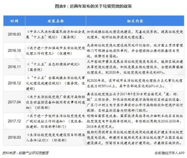 為了推動(dòng)垃圾焚燒模式的發(fā)展,政府也發(fā)布了多項(xiàng)政策。國務(wù)院發(fā)布的《“十三五”全國城鎮(zhèn)生活垃圾無害化處理設(shè)施建設(shè)規(guī)劃》中提到,到2020年底,建立較為完善的城鎮(zhèn)生活垃圾處理監(jiān)管體系,并要求生活垃圾焚燒處理設(shè)施應(yīng)落實(shí)日常監(jiān)管與定期監(jiān)督性監(jiān)測制度,以生活垃圾焚燒廠為重點(diǎn),加快建立生活垃圾焚燒廠運(yùn)營月報(bào)制度、年報(bào)制度,并按要求主動(dòng)公開相關(guān)信息。至2020年底,生活垃圾焚燒處理率將達(dá)到50%以上。環(huán)保政策驅(qū)動(dòng)和國家對(duì)PPP模式的提倡為垃圾焚燒行業(yè)的發(fā)展帶來良好的機(jī)遇。