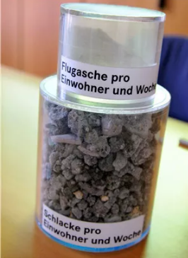 羅斯廠長給我們看了污水處理完后最終剩下的淺色粉末,它們被用做焚燒垃圾的燃料。還有,垃圾焚燒最后剩余的灰色固體石塊本可以用做鋪路材料。但羅斯廠長說他們沒有這么做,因為雖然現(xiàn)在技術(shù)檢驗不出含有重金屬,但不代表完全沒有。他們將這些固體石塊用密封的方式作為地下空礦洞的填充物。而魯爾區(qū)一帶的老煤礦早已停止開采,正需要填埋地下空礦。