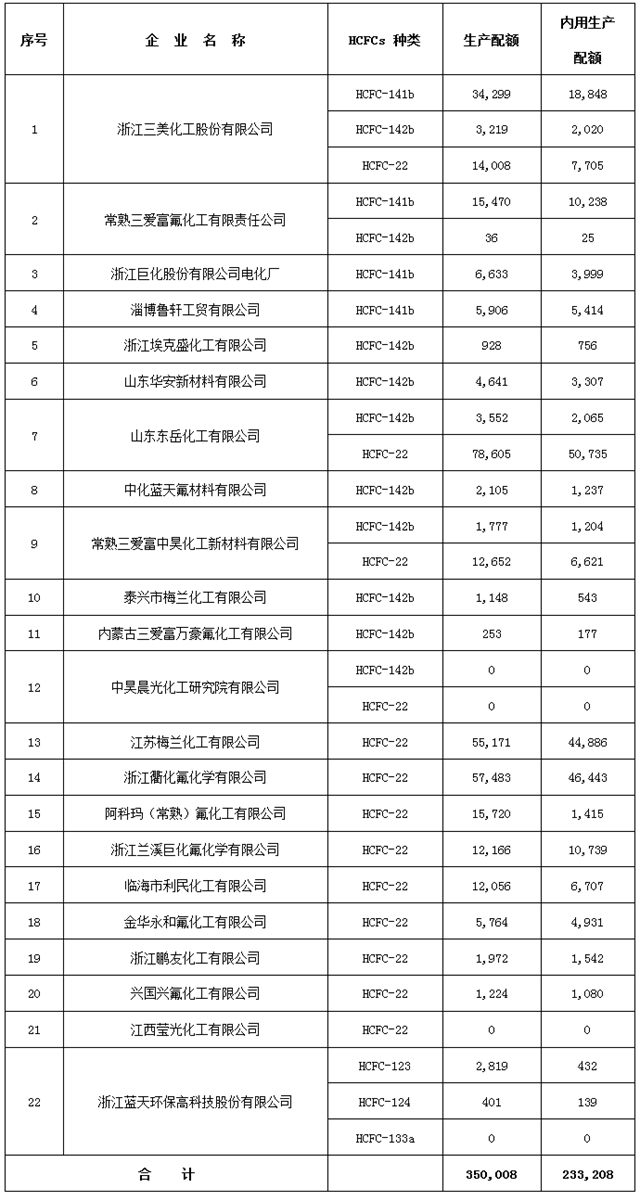 附件:1.2019年含氫氯氟烴(HCFCs)生產配額分配表